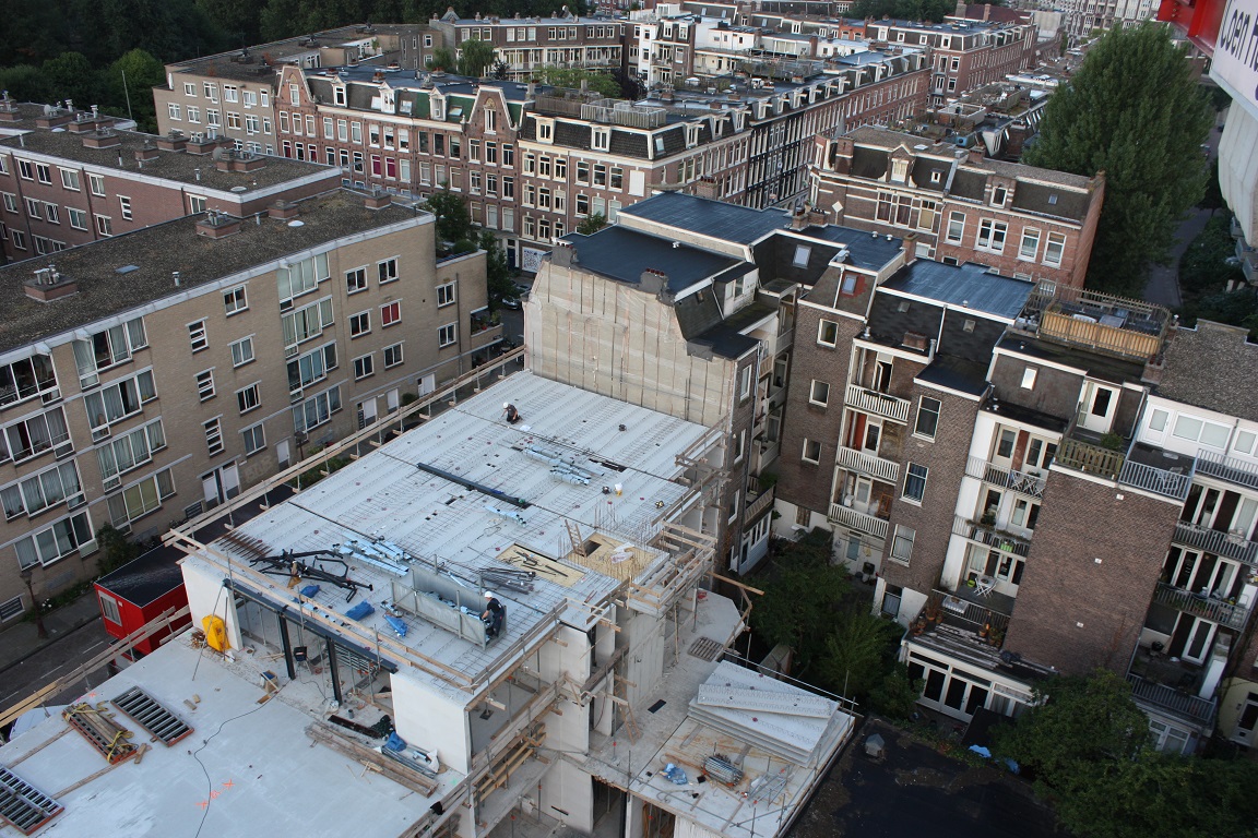 3e verdieping 3 september 2013 blok 2 Fagelstraat Amsterdam. De ruwbouw van dit deel is al over de helft. Een bouwvakker met tekening verdiept zich in de materie: bovenwapening? Intussen verdwijnen de rode gestapelde bouwketen uit het zicht. Delen: Oudere berichten Onderstempelen Nieuwere berichten 4e verdieping
