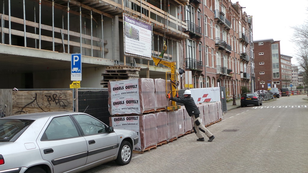 Bakstenen hijsen 5 december 2013 Aan de Jacob Catskade staan voor Blok 1 de pallets met metselstenen opgesteld. Met de hijskraan worden ze op de plek gezet waar ze verwerkt moeten worden Delen: Oudere berichten De eerste steen Nieuwere berichten Kadegevel ‘heel’