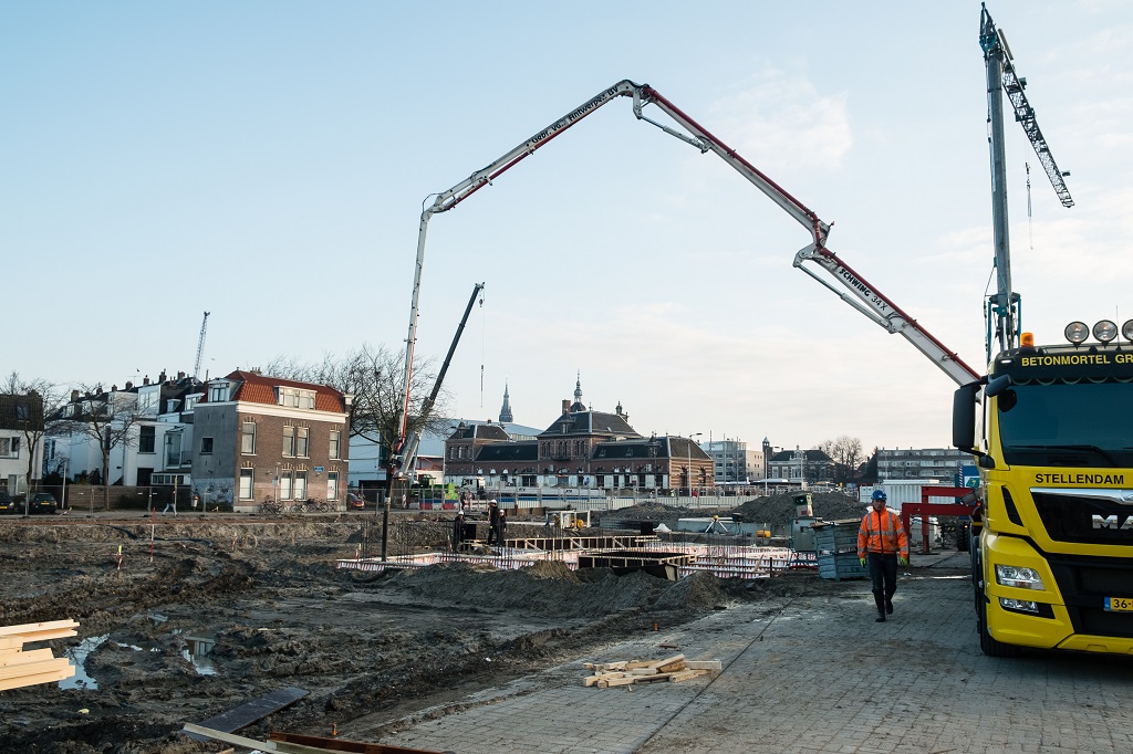 De eerste betonstort 16 maart 2016 Grachtenhuis Nieuw Delft. Vandaag worden de funderingsbalken gestort, maar dit ‘beton-team’ zal regelmatig terugkomen om wanden en verdiepingsvloeren te storten. Delen: Oudere berichten Wapening fundering vlechten Nieuwere berichten Leggen begane grond vloer