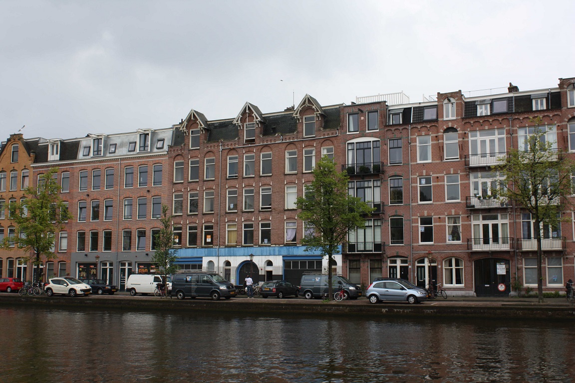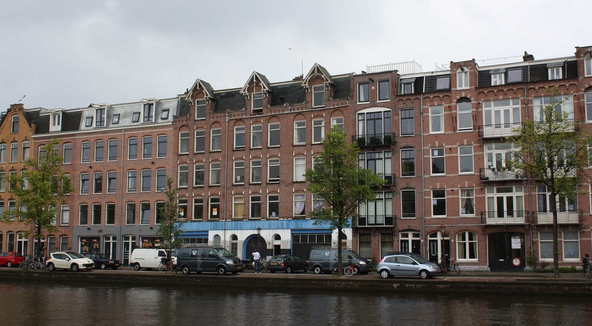 Jacob Catskade 37 t/m 41 Amsterdam. De 3 vervallen panden ter plaatse van de blauwe plint, moesten ruimte maken voor een blok met 10 levensloopappartementen i.o.v. Ymere. De karakteristieke houten dakkapellen hebben ervoor gezorgd, dat in de nieuwbouw ook 3 gemetselde topgevels terugkeren.